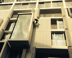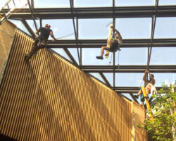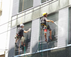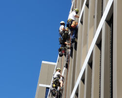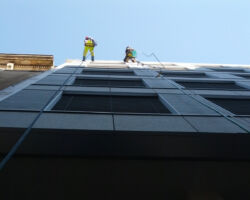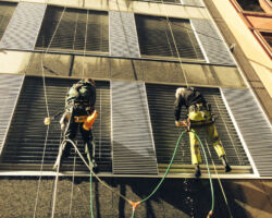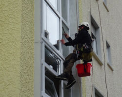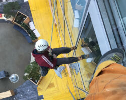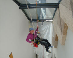 Les travaux sur cordes sont bien souvent la seule méthode d’accès possible pour nettoyer les cages d’escaliers et les cours intérieures / patios.