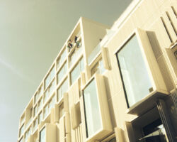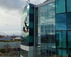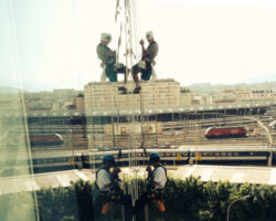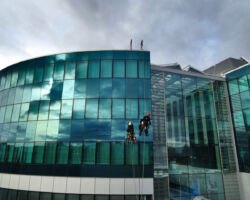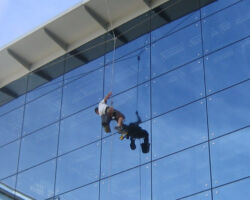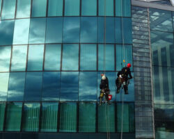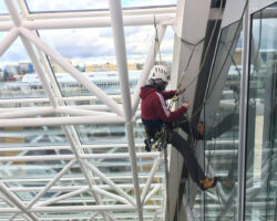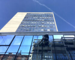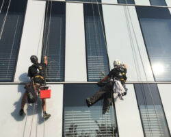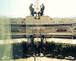 Nettoyage des façades vitrées et fenêtres. Nos méthodes efficaces permettent d’intervenir sur des bâtiments où une nacelle ou un échafaudage sont impossibles / disproportionnés à mettre en œuvre.